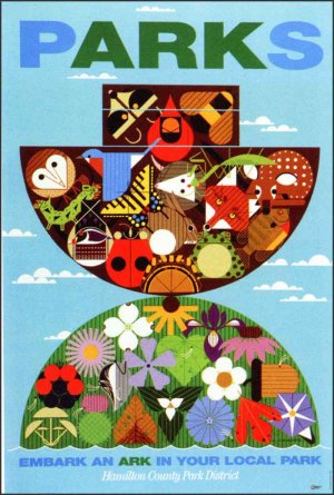 The Society of Ecological Restoration commissioned Charley Harper in 1996, which included his illustration of “Biodiversity in the ‘Burbs.” Not all human development is bad. We need a place to survive, but we have to ensure this doesn’t come at the cost of our planet. Charley Harper was a leading artist that wanted to show the ripple effect we have on our planet.